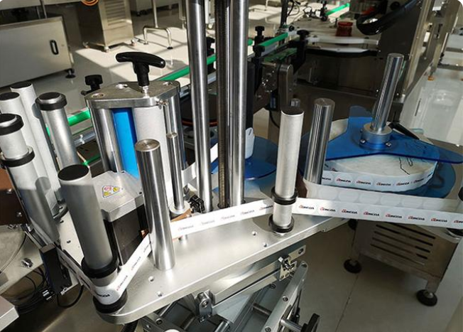 2、在多功能定位貼標(biāo)機(jī)添加標(biāo)簽時(shí),需要保證標(biāo)簽對(duì)齊。 首張標(biāo)簽需保持在導(dǎo)叉之間0.1~0.2mm,夾指應(yīng)將標(biāo)簽均勻壓在邊緣。 叼紙牙打開(kāi)后,滾輪海綿需要將標(biāo)簽壓在瓶子上,并需要調(diào)整垂直和水平定位板,以確保標(biāo)簽不會(huì)歪斜。